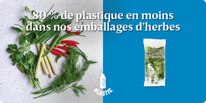 Nous avons renouvelé l’emballage de nos herbes fraîches — comme le thym, la menthe, la sauge, le romarin, le piment rouge, le bouquet garni, la coriandre, l’estragon, l’aneth, le persil plat, la ciboulette, le basilic, le gingembre et le curcuma.