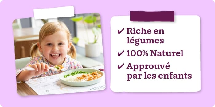 Nous savons à quel point il est important que les repas soient à la fois sains et savoureux. C'est pourquoi les repas Little Dish sont testés par les enfants pour s'assurer qu'ils soient appréciés. Sans sucre ajouté et pauvre en sel, c'est un choix totalement sain.