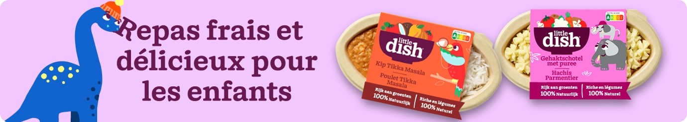 Chez Little Dish, nous pensons que les enfants méritent de bons petits plats, préparés avec des ingrédients naturels et sains. Notre gamme primée, destinée aux enfants de 1 à 5 ans, est cuisinée tout en douceur pour préserver les nutriments et la texture – de bons repas frais à conserver au réfrigérateur.