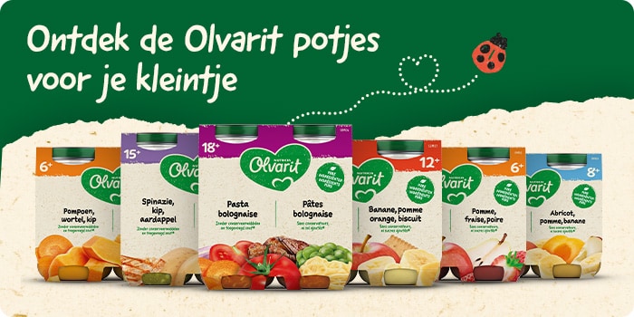 Olvarit maaltijd- en fruitpotjes bieden een complete maaltijd voor jouw kleintje. Elk potje heeft een herkenbare groente-en fruitsmaak en een textuur die past bij de leeftijd van je kindje. Zo ondersteunen we een goede smaakontwikkeling en helpen je kindje smaken herkennen én waarderen. Nu 3+3 gratis!