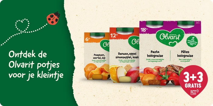 Nu 3+3 gratis op Olvarit maaltijd- en fruitpotjes!
