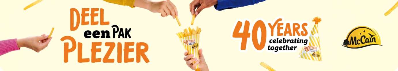 Al 40 jaar zorgt McCain voor gezellige frietmomenten bij je thuis. Dat vieren we met 40% extra frietjes in elk pak Tradition 1kg, Airfryer Klassiek of Special Oven Klassiek. Smakelijk!
